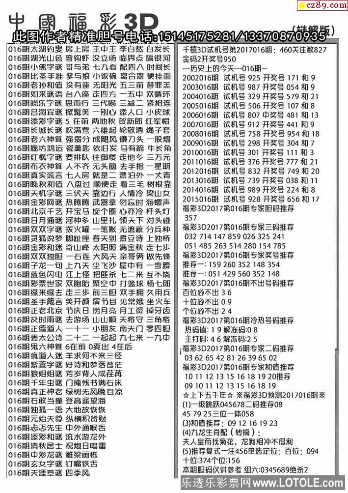 福彩3D2026016期图谜汇总